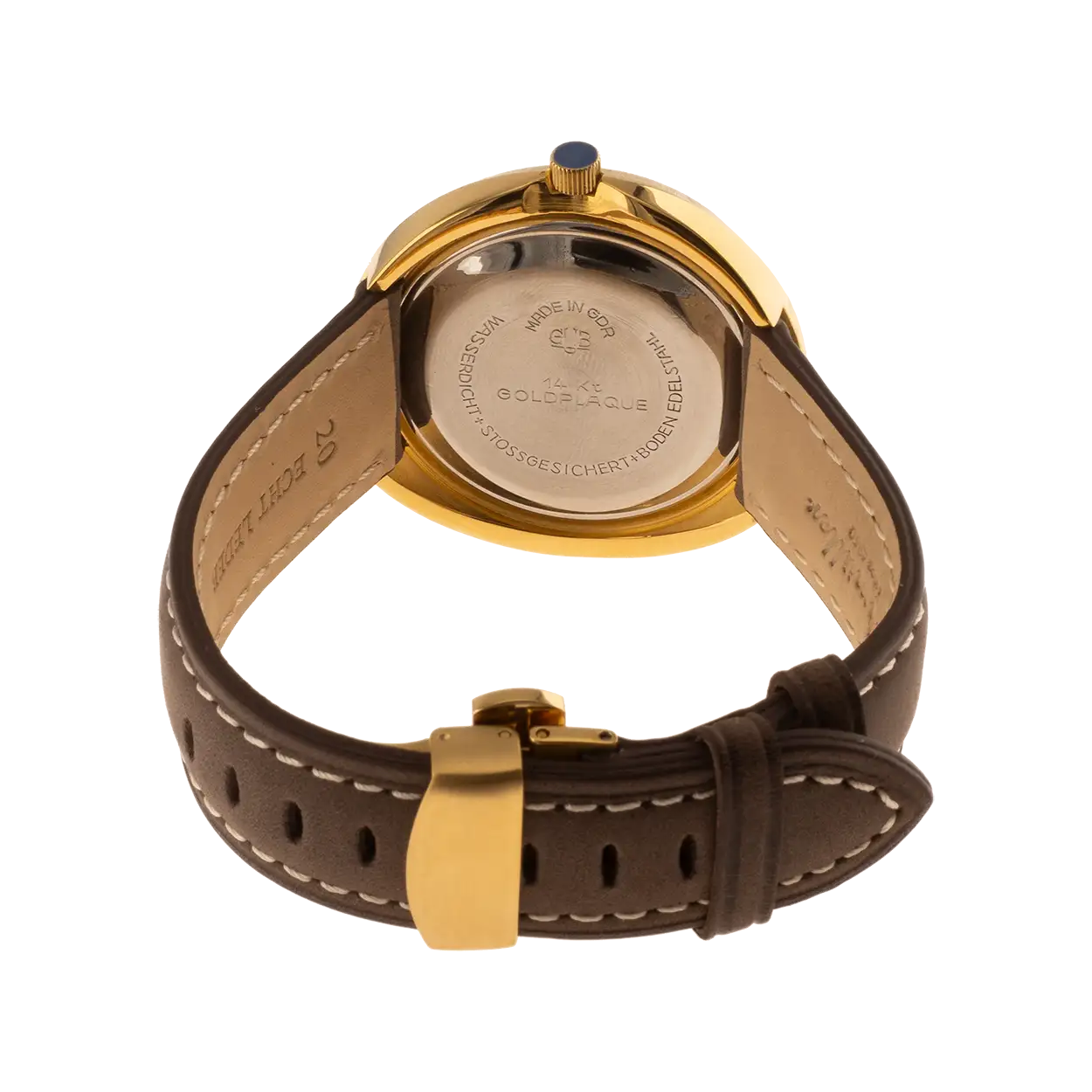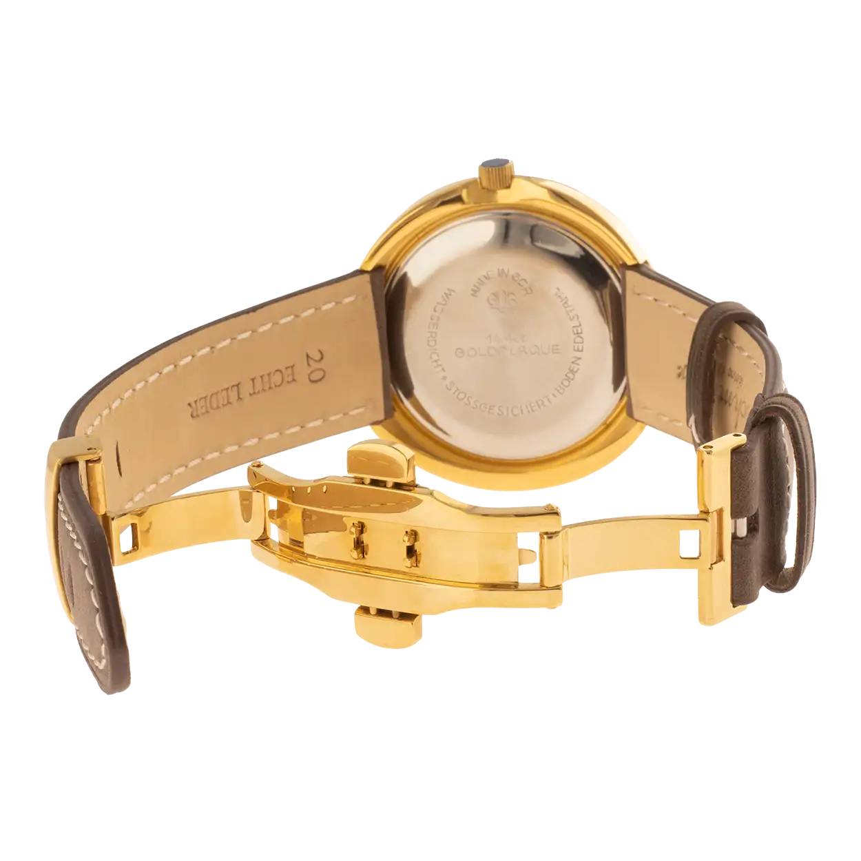 - Optional: massives Edelstahlband vergoldet, 20 mm mit Zwillingsfaltschließe